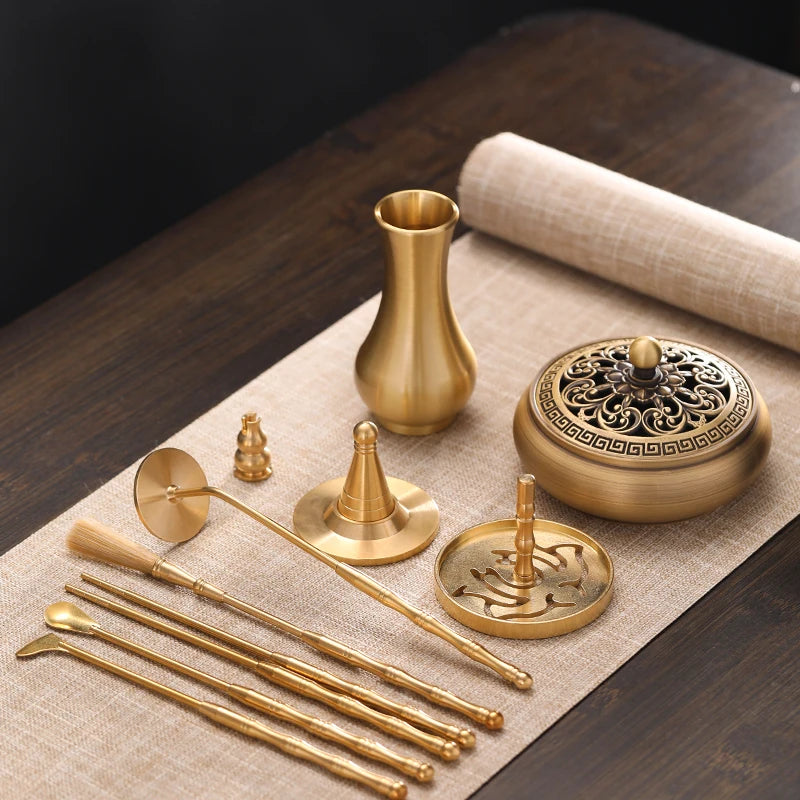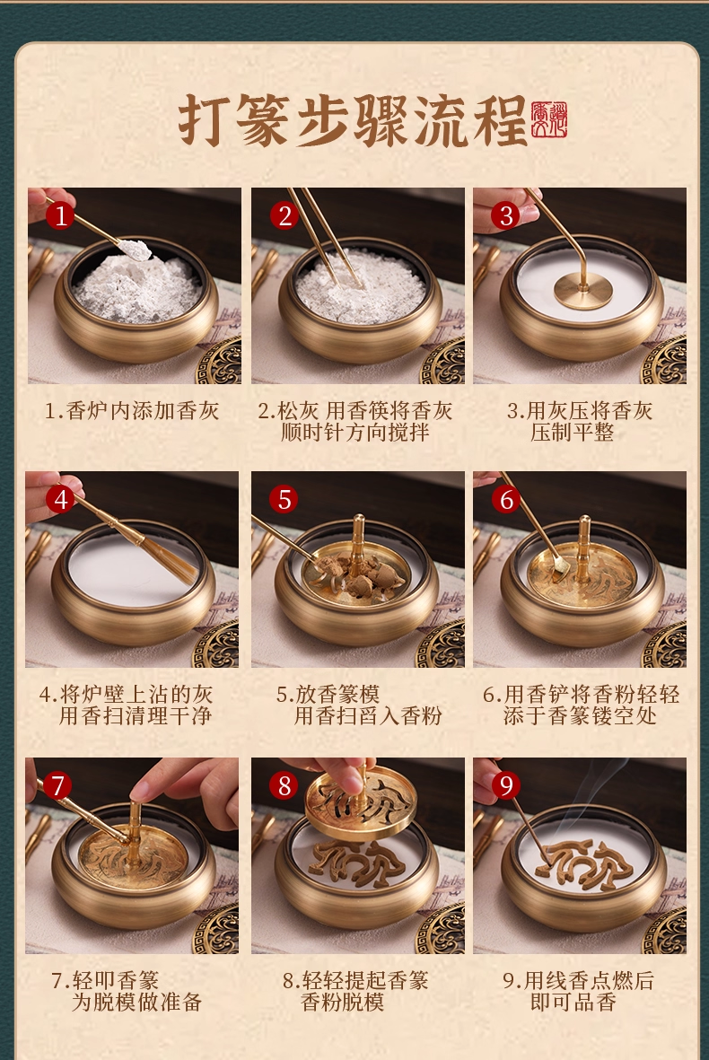 初心者おすすめ【香篆香道妙器セット|黄銅製香炉付きギフトボックス】中国お香 お香セット アロマ インセンス 雑貨 癒し 瞑想 ヨガ リラックス 禅 ギフト