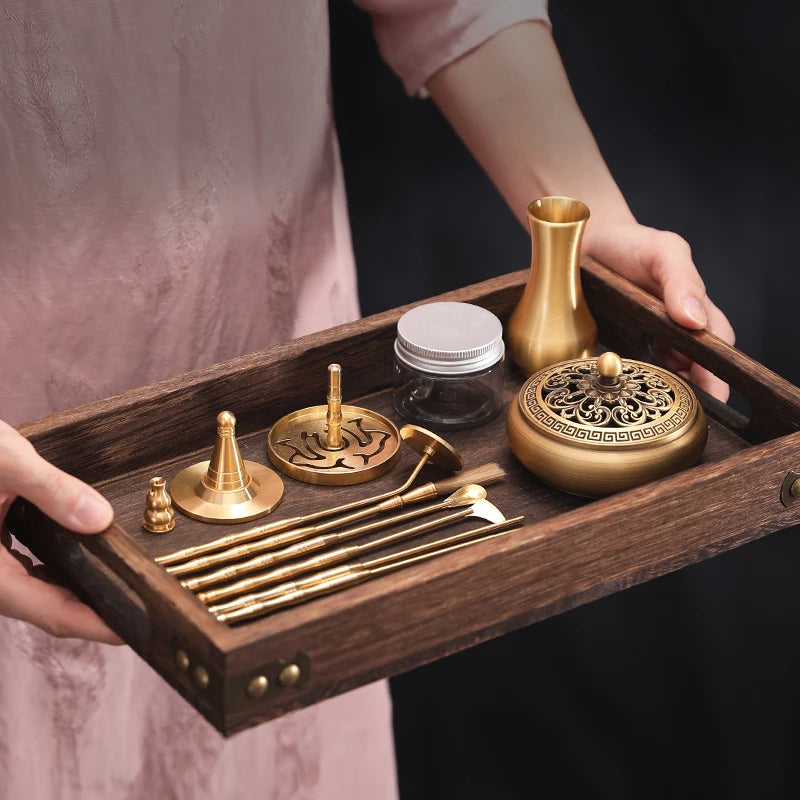 この香道セットがあれば、打香篆から香炉、灰押しまで——すべてが揃っています。