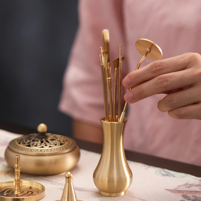 黄銅ならではの重厚感と優美な輝きが、香の香りをより上品に引き立てます。